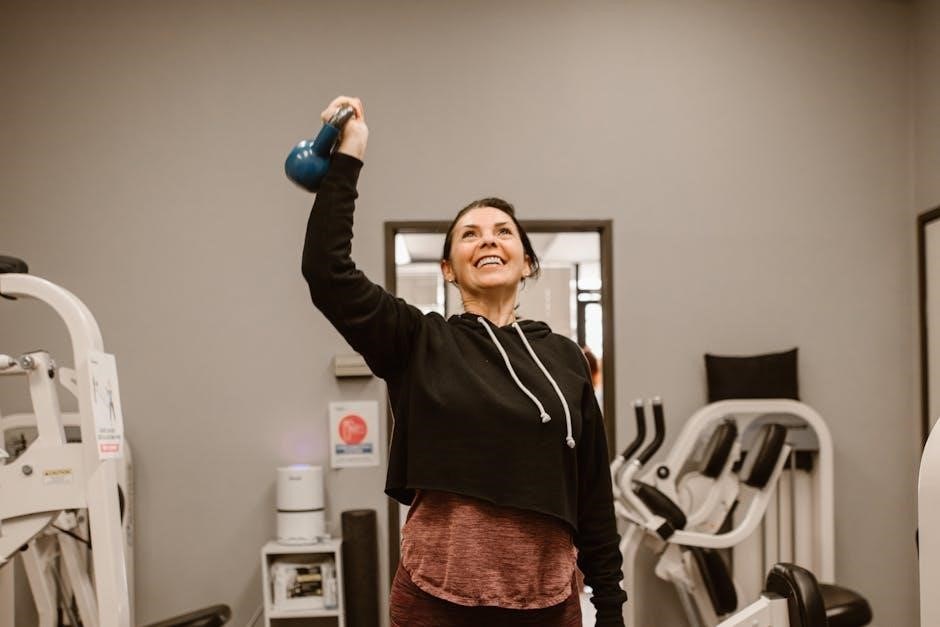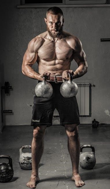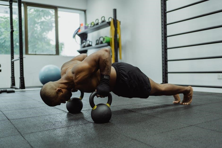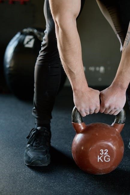 Furthermore, kettlebell training enhances flexibility, coordination, and balance. The unique offset weight challenges the body in new ways, promoting neuromuscular adaptation. Regularly utilizing downloadable PDFs ensures proper form and progressive overload, maximizing results and minimizing injury risk. It’s a time-efficient, full-body workout suitable for various fitness levels.